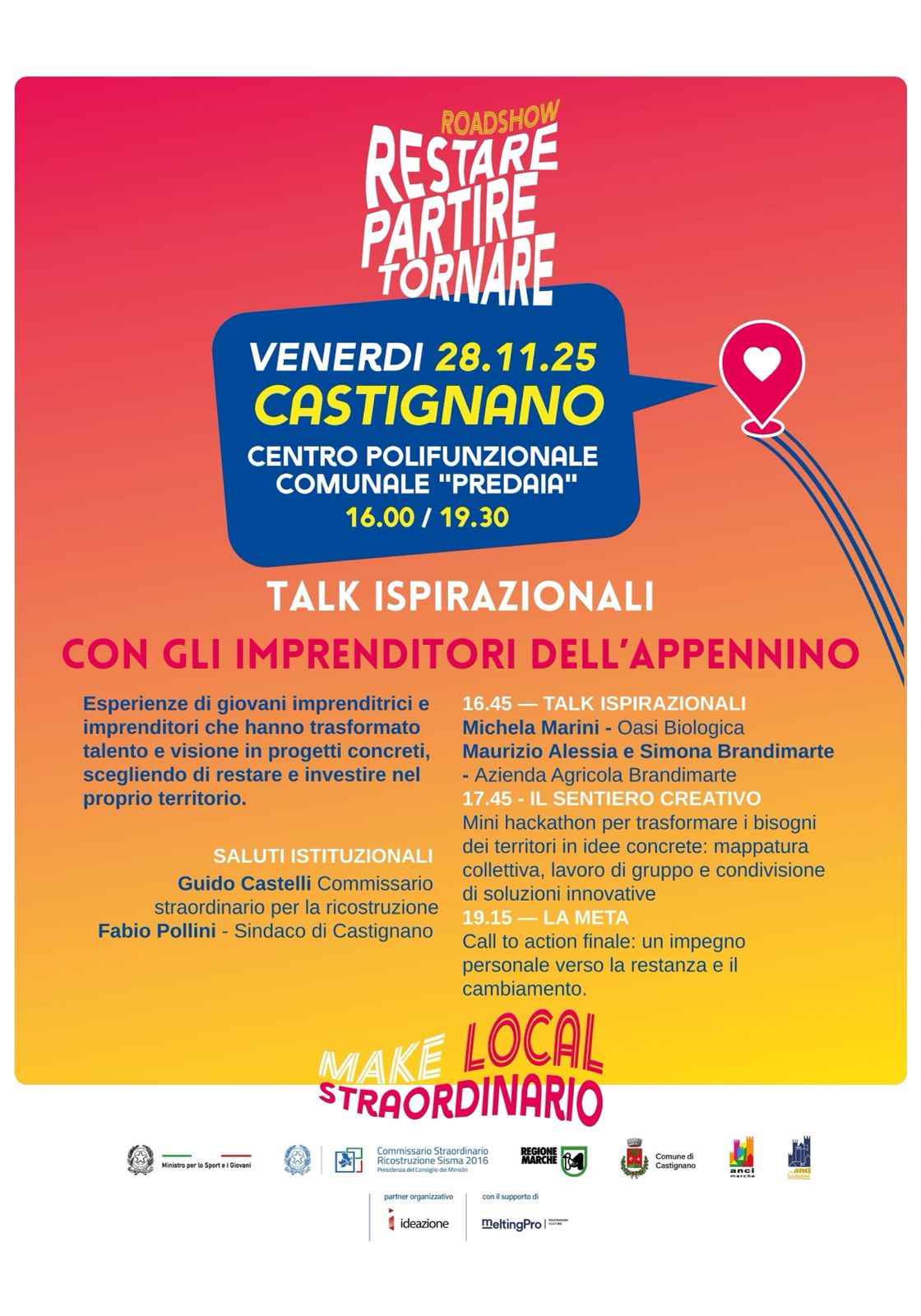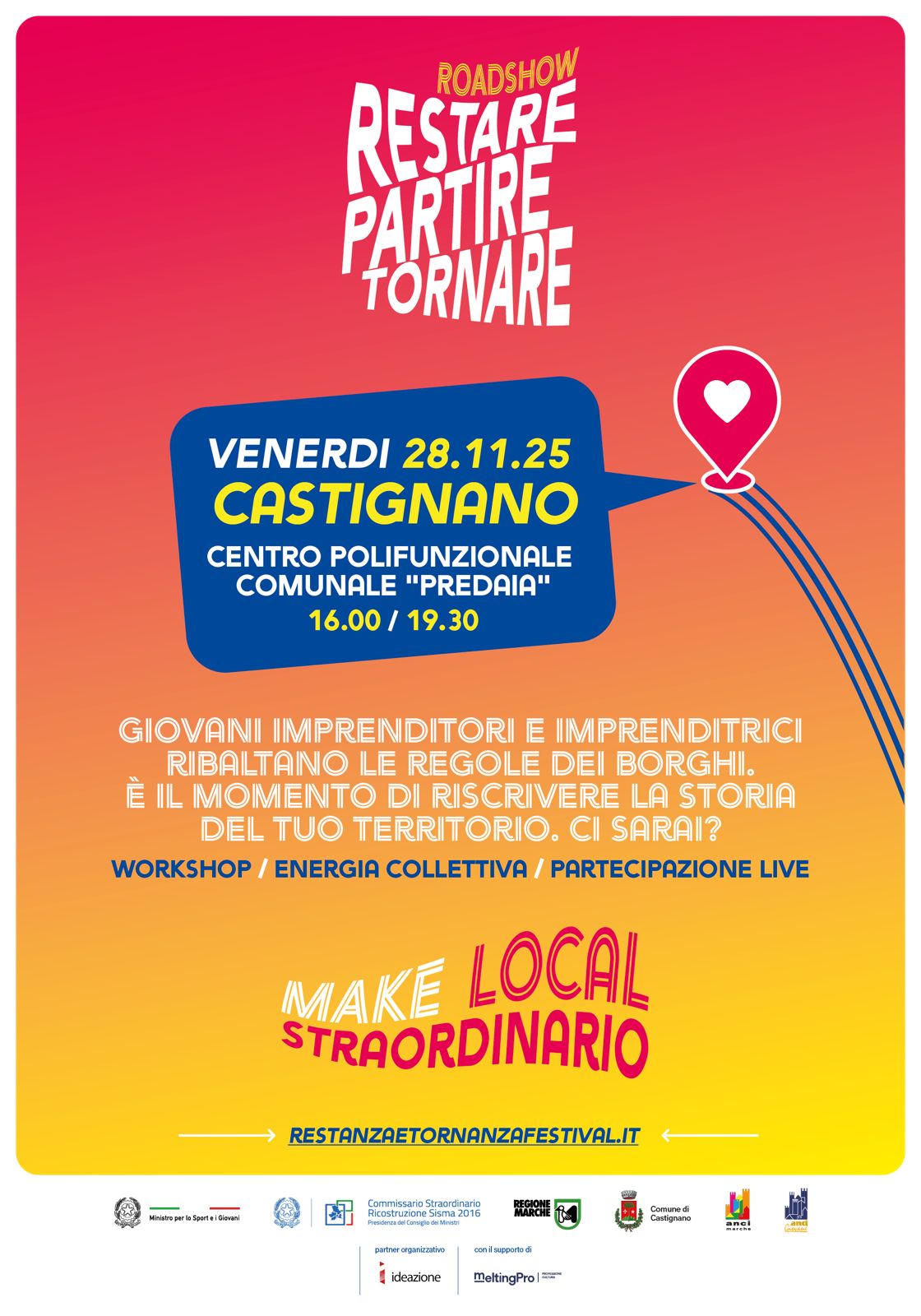 Registrazione qui: https://restanzaetornanzafestival.it/roadshow-castignano/